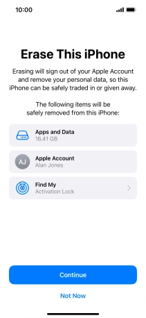 Key in the password for your Apple ID and press Turn Off. Wait a moment while the factory default settings are restored. Follow the instructions on the screen to set up your phone and prepare it for use.