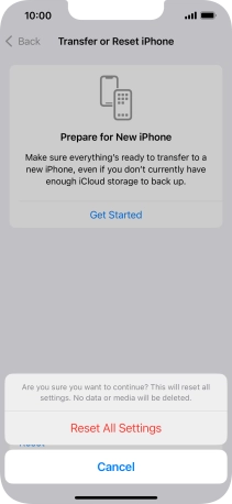 Press Reset All Settings. Wait a moment while the factory default settings are restored. Follow the instructions on the screen to set up your phone and prepare it for use.