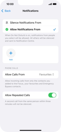 Press Add Schedule and follow the instructions on the screen to select settings for automatic activation of Do Not Disturb.