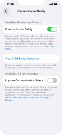 Turn Communication Safety on your Apple iPhone 13 iOS 26 on or off