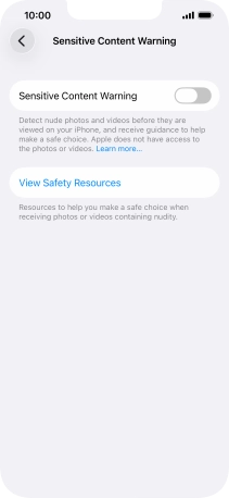 Press the indicator next to "Sensitive Content Warning" to turn the function on or off.