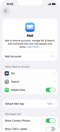 Press the required email account and follow the instructions on the screen to select settings for the specific account.