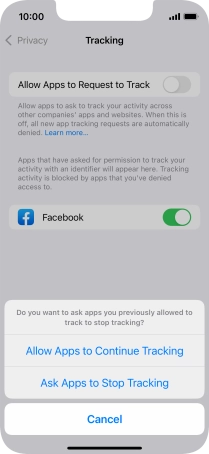 Press the indicator next to "Allow Apps to Request to Track" to turn the function on or off.