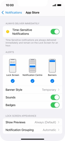 Press the indicator next to "Time-Sensitive Notifications" to turn the function on or off.