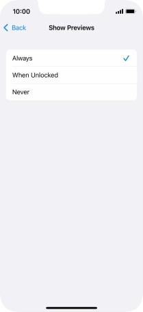 To select notification preview only when your phone is unlocked, press When Unlocked.