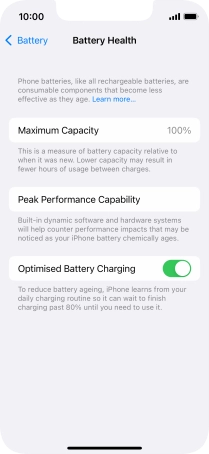 Press the indicator next to "Optimised Battery Charging" to turn the function on or off.