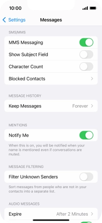 Press the indicator next to "MMS Messaging" to turn on the function.