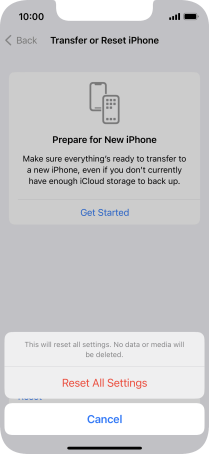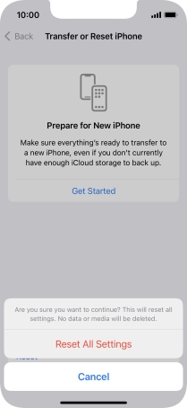Press Reset All Settings. Wait a moment while the factory default settings are restored. Follow the instructions on the screen to set up your phone and prepare it for use.