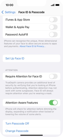 Press Face ID & Passcode.