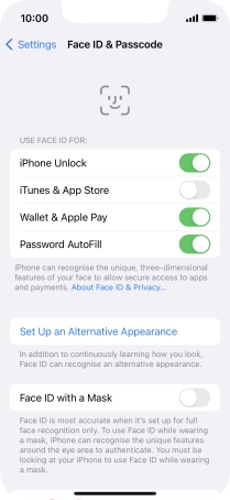 You can use your Face ID to turn off the phone lock code, allow access to apps and authorise payments.