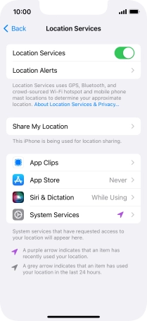 Press the indicator next to "Location Services" to turn the function on or off.