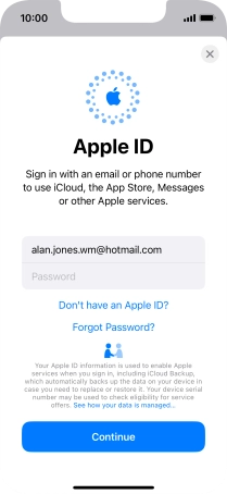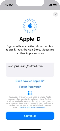 If you don t have an Apple ID, press Don't have an Apple ID? and follow the instructions on the screen to create an Apple ID.