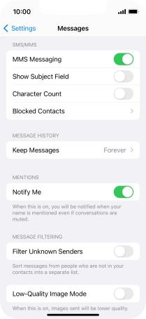 Press the indicator next to "MMS Messaging" to turn on the function.
