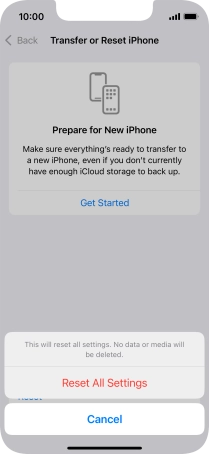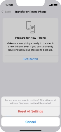 Press Reset All Settings. Wait a moment while the factory default settings are restored. Follow the instructions on the screen to set up your phone and prepare it for use.