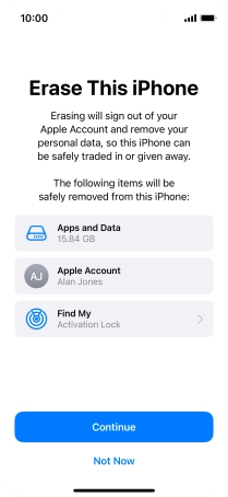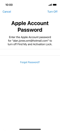 Key in the password for your Apple ID and press Turn Off. Wait a moment while the factory default settings are restored. Follow the instructions on the screen to set up your phone and prepare it for use.
