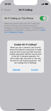 Press the indicator next to "Wi-Fi Calling on This iPhone" to turn the function on or off.