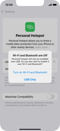 If Wi-Fi is turned on, press Wi-Fi and USB Only.