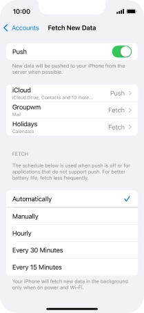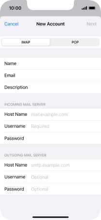 Press the required email account and follow the instructions on the screen to select settings for the specific account.