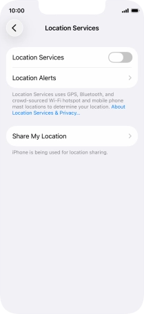 Press the indicator next to "Location Services" to turn the function on or off.