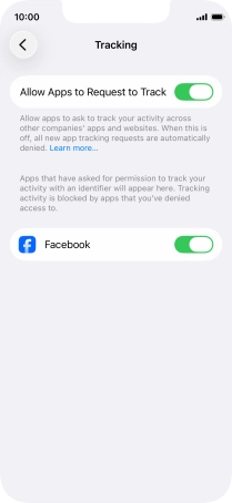 Press the indicator next to "Allow Apps to Request to Track" to turn the function on or off.