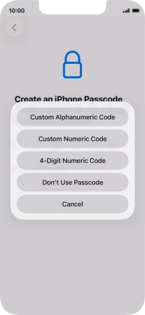 Follow the instructions on the screen to turn on use of phone lock code or press Don't Use Passcode.