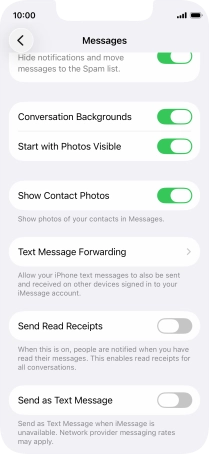 Press the indicator next to "iMessage" to turn on the function.
