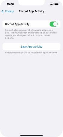 Press the indicator next to "Record App Activity" to turn on the function.