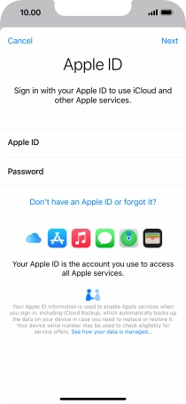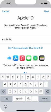 If you don t have an Apple ID, press Don't have an Apple ID or forgot it? and follow the instructions on the screen to create an Apple ID.