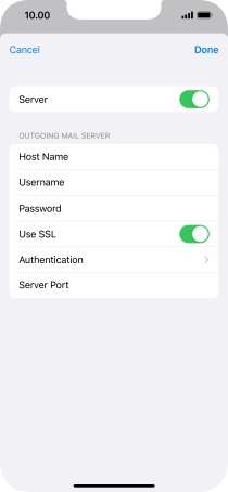 Press Password and key in the password for your email account. Please note that if you're using Vodafone's outgoing server, leave the password field empty.
