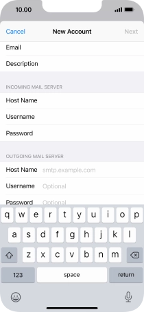 Press Host Name and key in the name or IP address of your email provider's outgoing server. Please note that if you can't send email messages when using your email provider's outgoing server, key in smtp.vodafone.net.au (Vodafone's outgoing server).