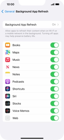 Select settings for background refresh of apps on your Apple iPhone 13 Pro iOS 16.0