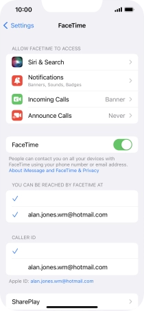 Press the required setting below "YOU CAN BE REACHED BY FACETIME AT".