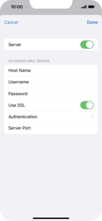 Press Host Name and key in the name or IP address of your email provider's outgoing server. Please note that if you can't send email messages when using your email provider's outgoing server, key in smtp.vodafone.net.au (Vodafone's outgoing server).