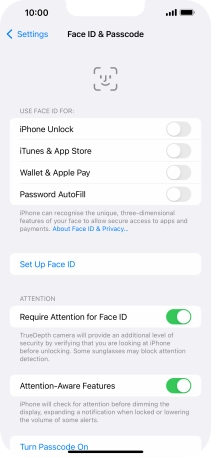 Press Turn Passcode On and key in a phone lock code of your own choice twice.