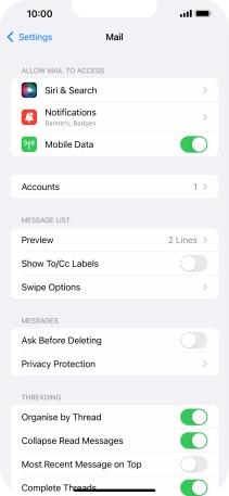 Press the required email account and follow the instructions on the screen to select settings for the specific account.