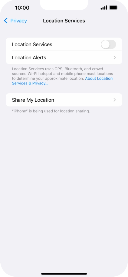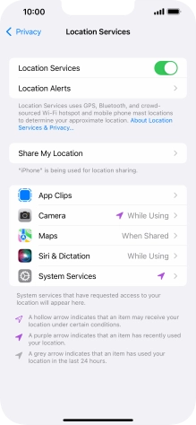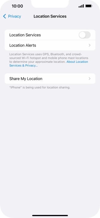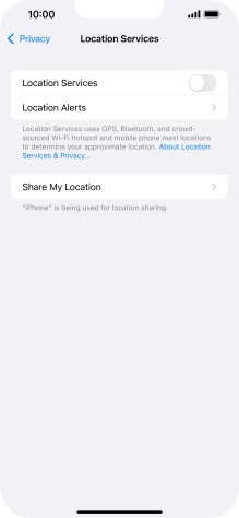 Press the indicator next to "Location Services" to turn the function on or off.