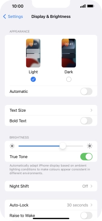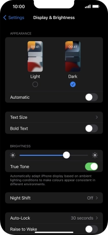 If you turn on the function, press Options and follow the instructions on the screen to select the required period of time for Dark Mode.
