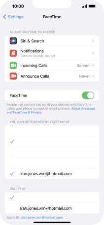 Press the required setting below "YOU CAN BE REACHED BY FACETIME AT".