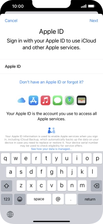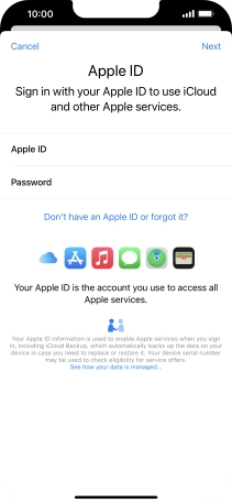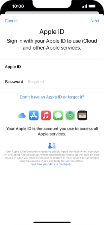 If you don t have an Apple ID, press Don't have an Apple ID or forgot it? and follow the instructions on the screen to create an Apple ID.