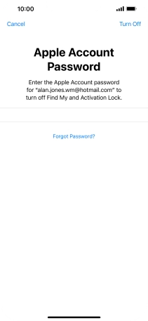 Key in the password for your Apple ID and press Turn Off. Wait a moment while the factory default settings are restored. Follow the instructions on the screen to set up your phone and prepare it for use.