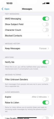Press the indicator next to "MMS Messaging" to turn on the function.