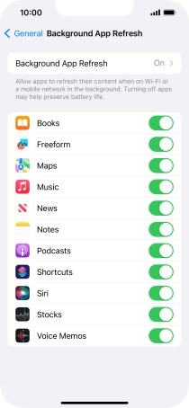Select settings for background refresh of apps on your Apple iPhone 14 iOS 17