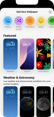 Press Customise and follow the instructions on the screen to customise the selected lock screen.