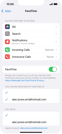 Press the required setting below "YOU CAN BE REACHED BY FACETIME AT".