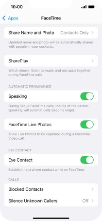 Press the indicator next to "FaceTime" to turn the function on or off.