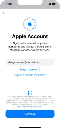 An Apple Account gives you access to a number of services on your phone such as iCloud, App Store and iTunes. To activate an Apple Account on your phone you need to set up your phone for internet.