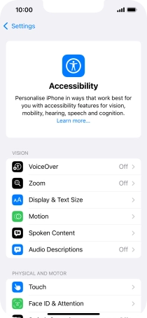 Select accessibility settings on your Apple iPhone 14 iOS 18
