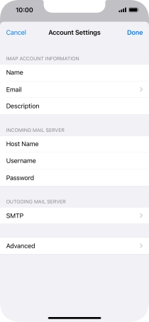 Press the required email account and follow the instructions on the screen to select settings for the specific account.
