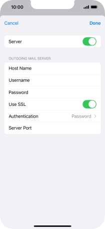 Press Password and key in the password for your email account. Please note that if you're using Vodafone's outgoing server, leave the password field empty.