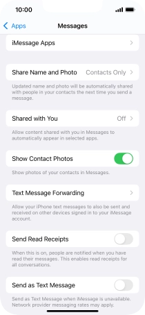 Press the indicator next to "Send as Text Message" to turn the function on or off.